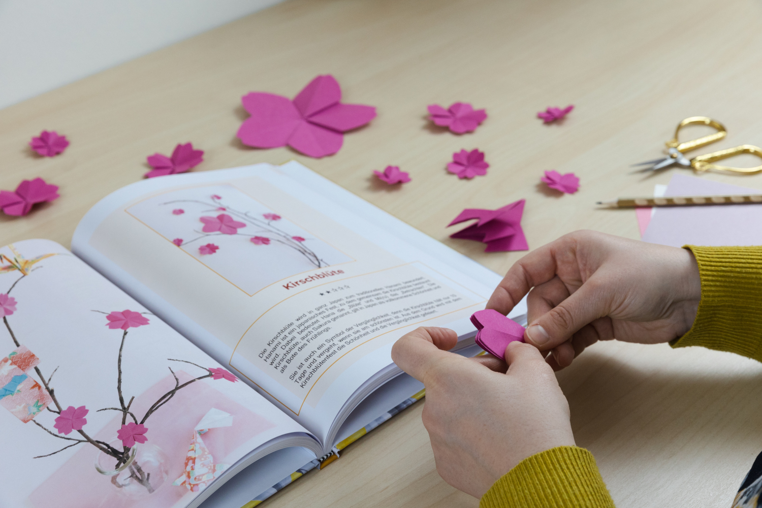 Außerdem gebe ich dir eine Einführung in die verschiedenen Papierarten, in die Bedeutung der Muster auf dem Papier und zu den Origami Figuren.